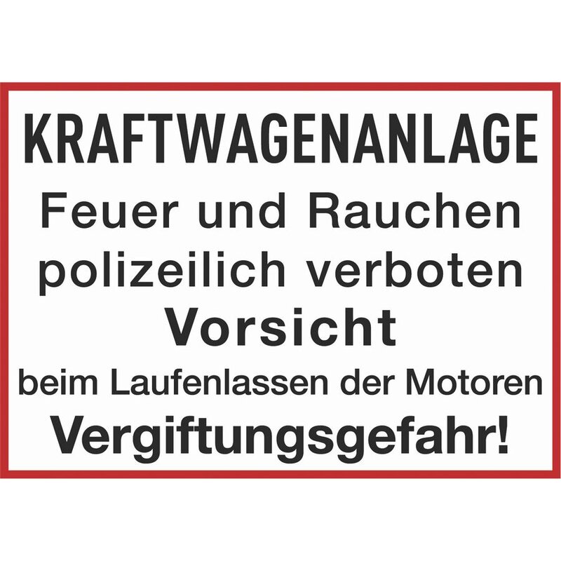 KRAFTWAGENANLAGE Feuer und Rauchen polizeilich verboten Vorsicht beim Laufenlassen der Motoren Vergiftungsgefahr!