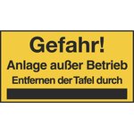 Gefahr! Anlage außer Betrieb Entfernen der Tafel durch ?..