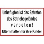 Unbefugten ist das Betreten des Betriebsgeländes verboten! Eltern haften für ihre Kinder