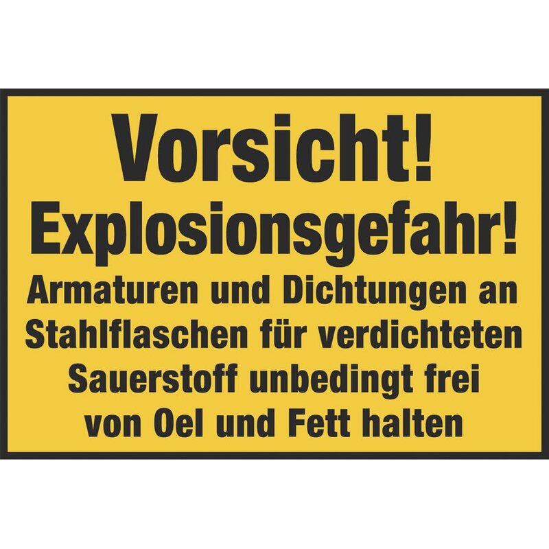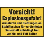 Vorsicht! Explosionsgefahr! Armaturen und Dichtungen an Stahlflaschen für verdichteten Sauerstoff unbedingt frei von Oel und Fett halten