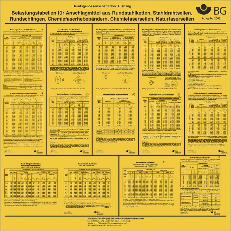 Belastungstabellen für Anschlagmittel aus Rundstahlketten, Stahldrahtseilen, Ausgabe 2009 Alu 0,5 mm stark, bedruckt