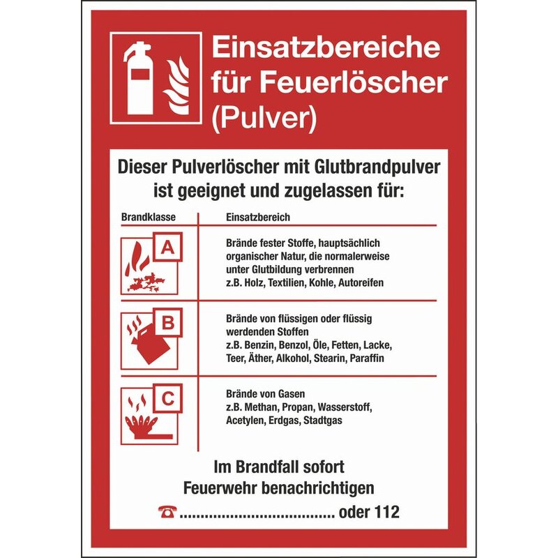 Einsatzbereiche für Feuerlöscher (Pulver)