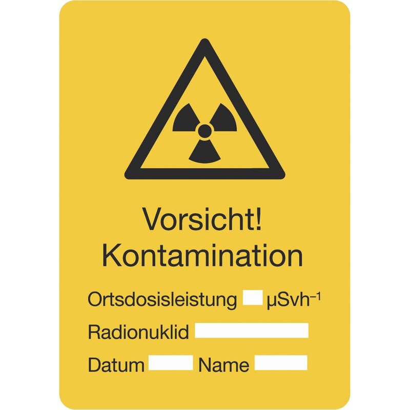 Vorsicht! Kontamination, Ortsdosisleistung, Radionuklid, Datum, Name