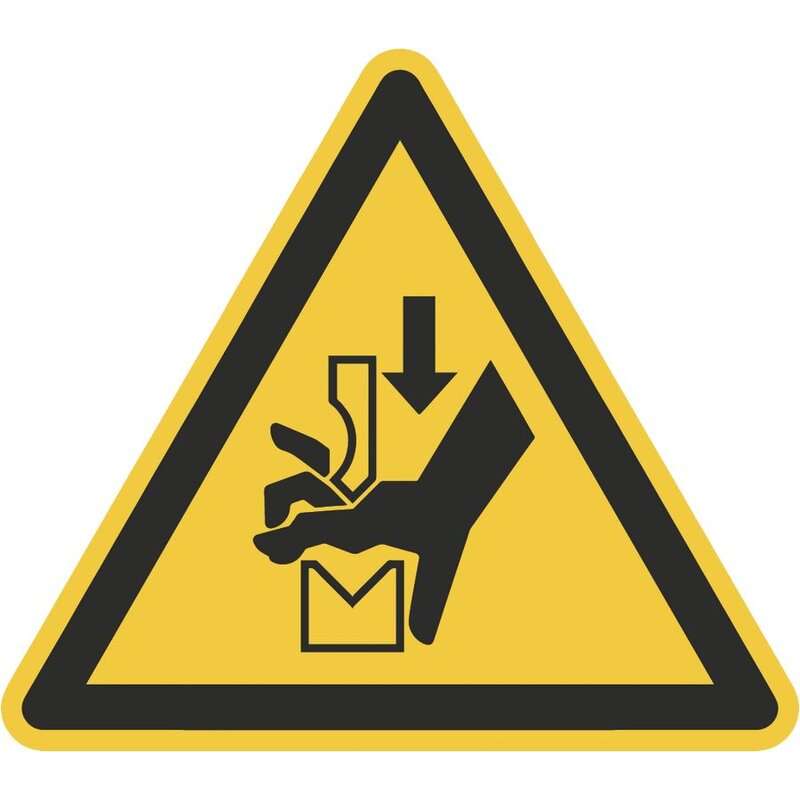 Warnung vor Quetschgefahr der Hand zwischen den Werkzeugen einer Presse